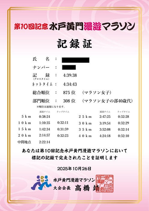 (ちなみに、マラソン中、少し小雨が降りましたが、全く気にならない位でした。)