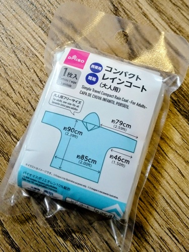 走り出したら降るかもしれないので、ダイソーで買ったレインコートを着ました。