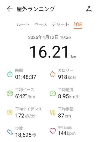 この日は、16km走りました。