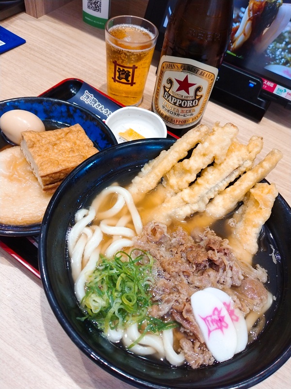 美味しい!!走った後におでんとビール、肉ごぼ天うどん。最高です。