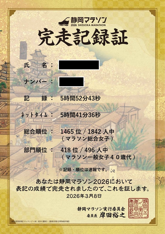 でも、走れるけどタイムを狙うのは無理だと思いました。